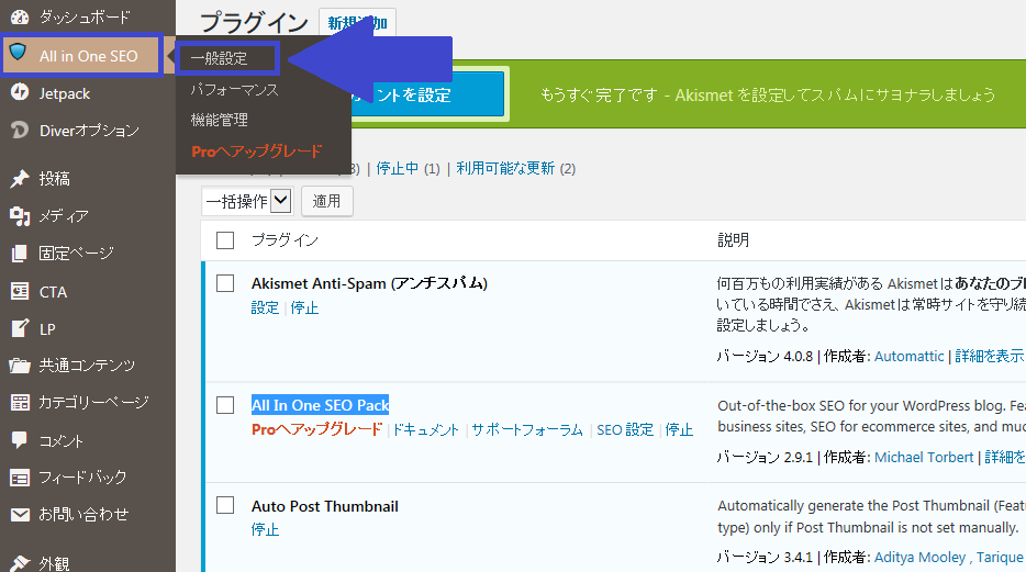 【All in One SEO Pack】→【一般設定】と進んでください。