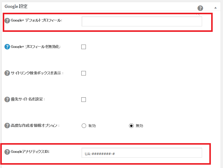 【Google設定】では、【GoogleアナリティクスID】という欄にアナリティクスのトラッキングIDを貼ってください。