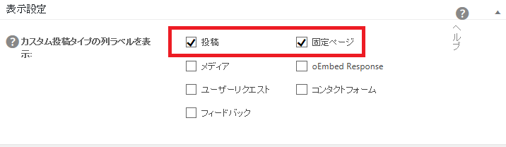 【カスタム投稿タイプの列ラベルを表示】の「投稿」と「固定ページ」にチェックが入っている事を確認しておいてください。