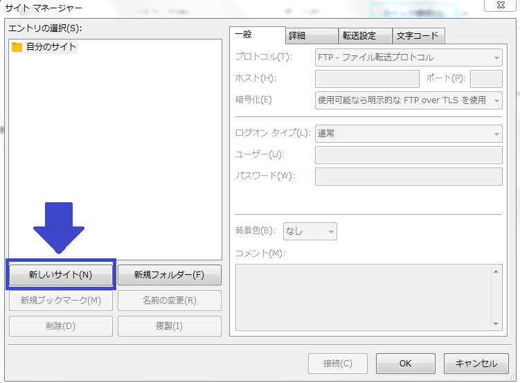 サイトマネージャが開いたら、次に【新しいサイト】をクリックしてください。