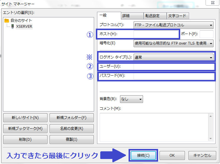 FileZillaとXSERVERの接続手順