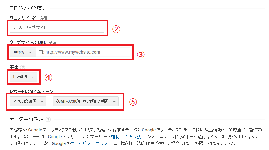 途中にあるデータ共有設定のチェックボックスの「レ点」は外さないでそのままにしてください。
