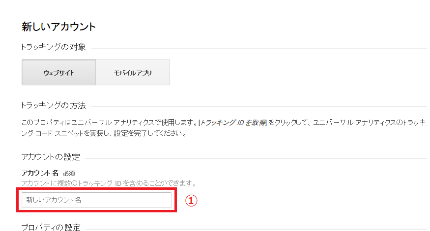 1番上の「トラッキングの対象」はウェブサイトのまま触らない。