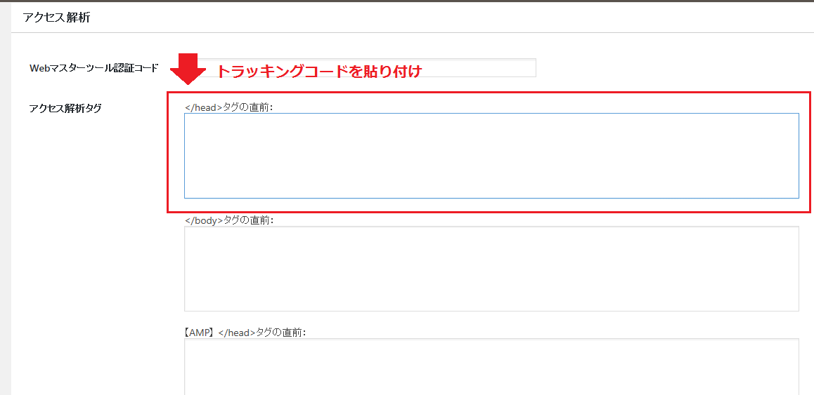 テーマの編集画面からトラッキングコードを挿入して設置する方法
