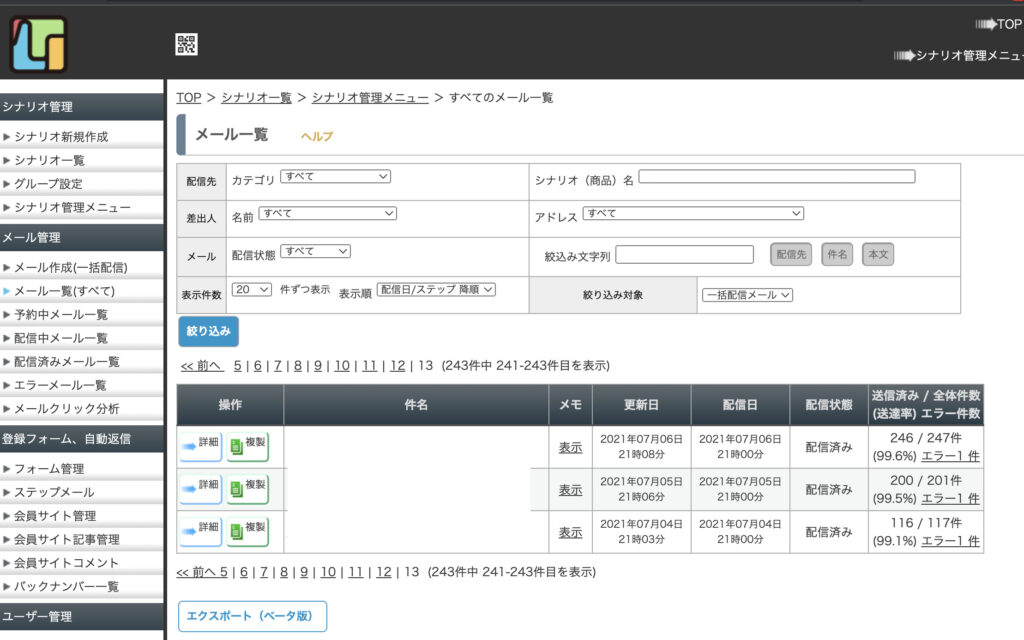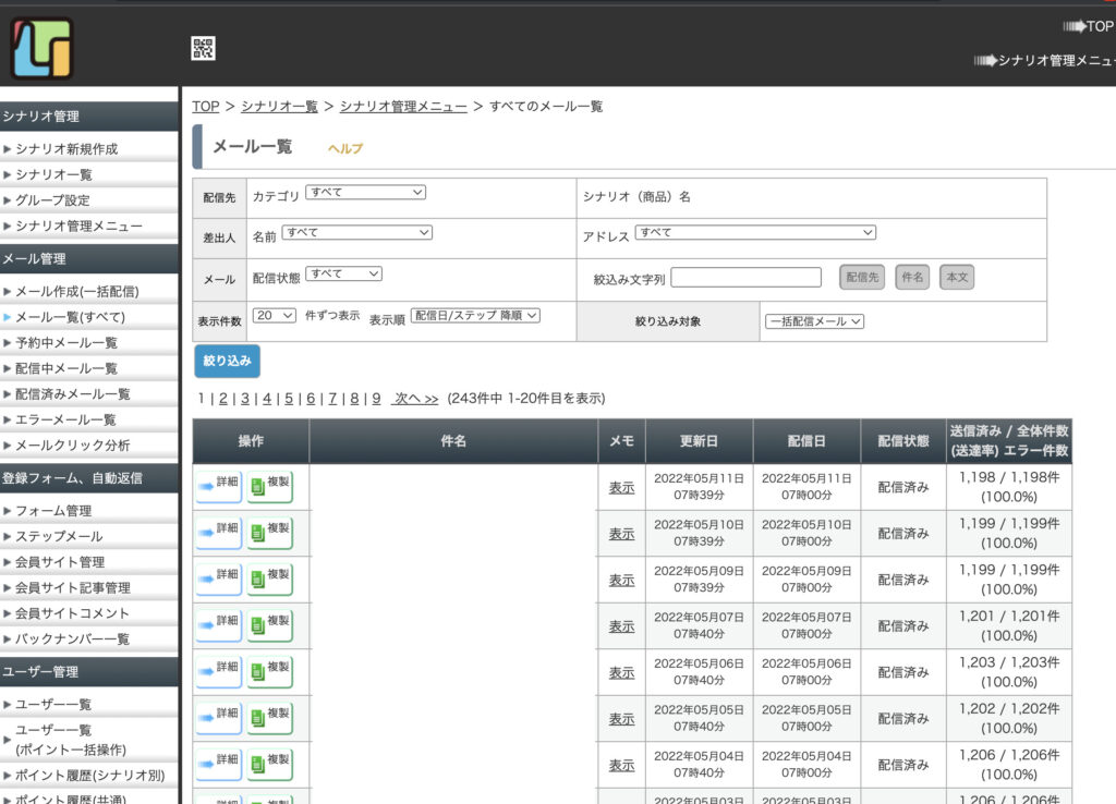 メルマガ開始が7月からで、約8ヶ月の間に243件配信していますから、