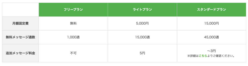LINEでは配信数によって料金が変わる仕組みで、費用は以下の通りです。